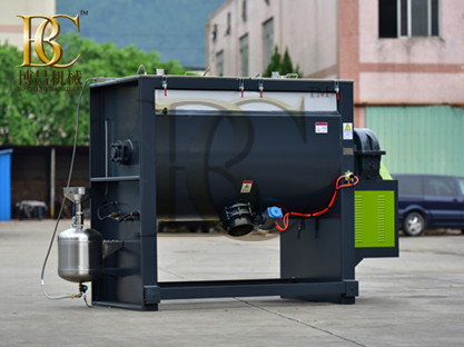 博昌答:首先我們需要在粉體臥式攪拌機(jī)設(shè)備上面裝置噴霧系統(tǒng),規(guī)定多少容量,使液體變成霧化形狀噴下去,這樣就解決了問(wèn)題,效果更好。