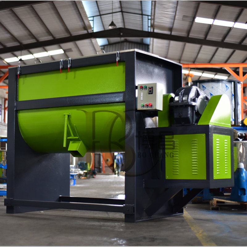 全自動臥式攪拌機設(shè)備廣泛應用于化工、塑料、橡膠、食品、、高分子、建筑、防火材料等顆粒、粉體、液體物料之間的攪拌混合,全自動臥式攪拌機設(shè)備 傳動主軸上布置了雙層螺旋葉片,外部葉片將物料向中間輸送,內(nèi)部葉片將物料向外側(cè)輸送。物料在雙層螺旋帶的對流運動下,形成了一個低動力高效的混合環(huán)境。由安裝在攪拌軸上的內(nèi)外徑螺旋帶動桶體內(nèi)物料,使攪拌器在桶體內(nèi)對物料進行大范圍的翻動過程。攪拌裝置在工作時,內(nèi)螺旋帶動靠近軸心處物料做軸心旋轉(zhuǎn),軸向由內(nèi)至兩側(cè)推動,外螺旋帶動靠近桶壁物料做軸心旋轉(zhuǎn),軸向由兩側(cè)至內(nèi)推動,本混合物料能夠在較短時間內(nèi)均勻混合。