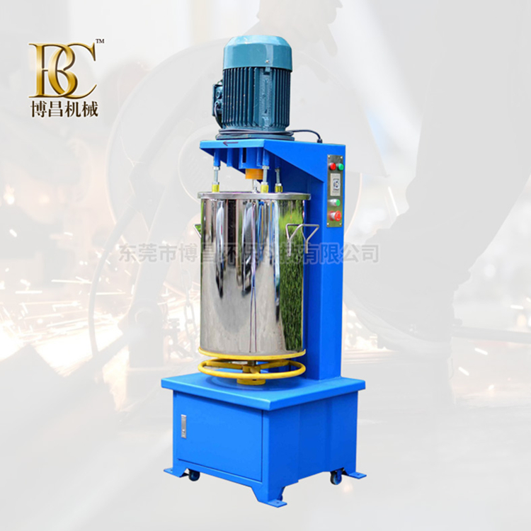 博昌公司研發的色粉打粉機適用于各種塑料顏料與色母的混合攪拌;可一機配多桶。設備與原料所接觸部分的材料皆為304鏡面不銹鋼制作;做工精細,光滑的桶壁及槳葉在清洗時相當便捷。特制攪拌刀使色粉、顏料混合更加均勻、快速;攪拌軸轉動部位采用合金烏鋼制作;經久耐用,耐高溫,不會因高速運轉發熱而燒焦色粉;高效;一般可在1-10分鐘內攪拌均勻,數顯定時功能,可隨意設定,操作簡單.