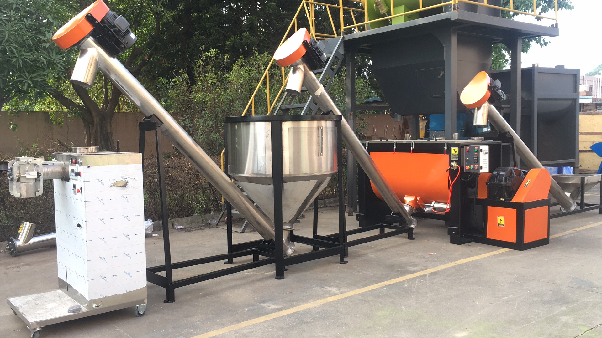 混合機有多種選擇,如雙螺旋錐形混合機、犁刀混合機、螺帶混合機、雙軸槳葉無重力混合機等。